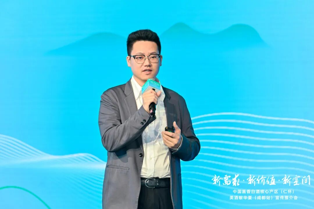 仁怀市酒业协会常务副会长、秘书长刘帮涛详细阐述了仁怀产区的品质密码。刘帮涛表示,仁怀拥有得天独厚的自然禀赋,遵循“端午制曲、重阳下沙”的酿造智慧,坚守12987酿造工艺,更在历史的纵深中融入了民族精神的基因。