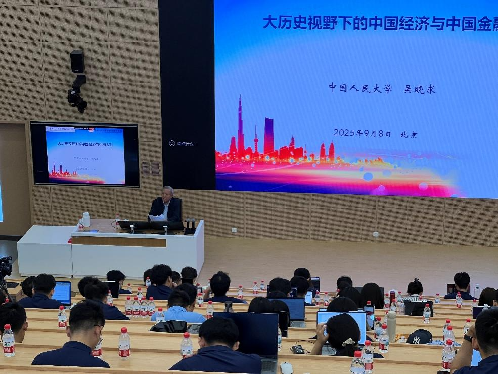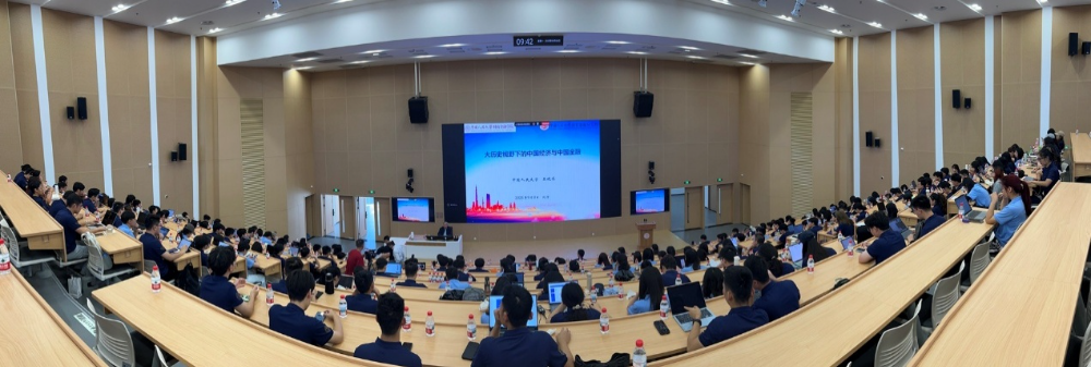 2025年9月8日上午,中国人民大学原副校长、国家金融研究院院长、中国资本市场研究院院长、国家一级教授吴晓求在人大东校区为财政金融学院2025级研究生新生讲授入学专业第一课,主题为“大历史视野下的中国经济与中国金融”,这是东校区本学期启用后财政金融学院第一堂专业课。财政金融学院副院长钱宗鑫教授主持了本次讲座,400多名2025级研究生新生共同聆听了吴晓求教授的精彩授课。